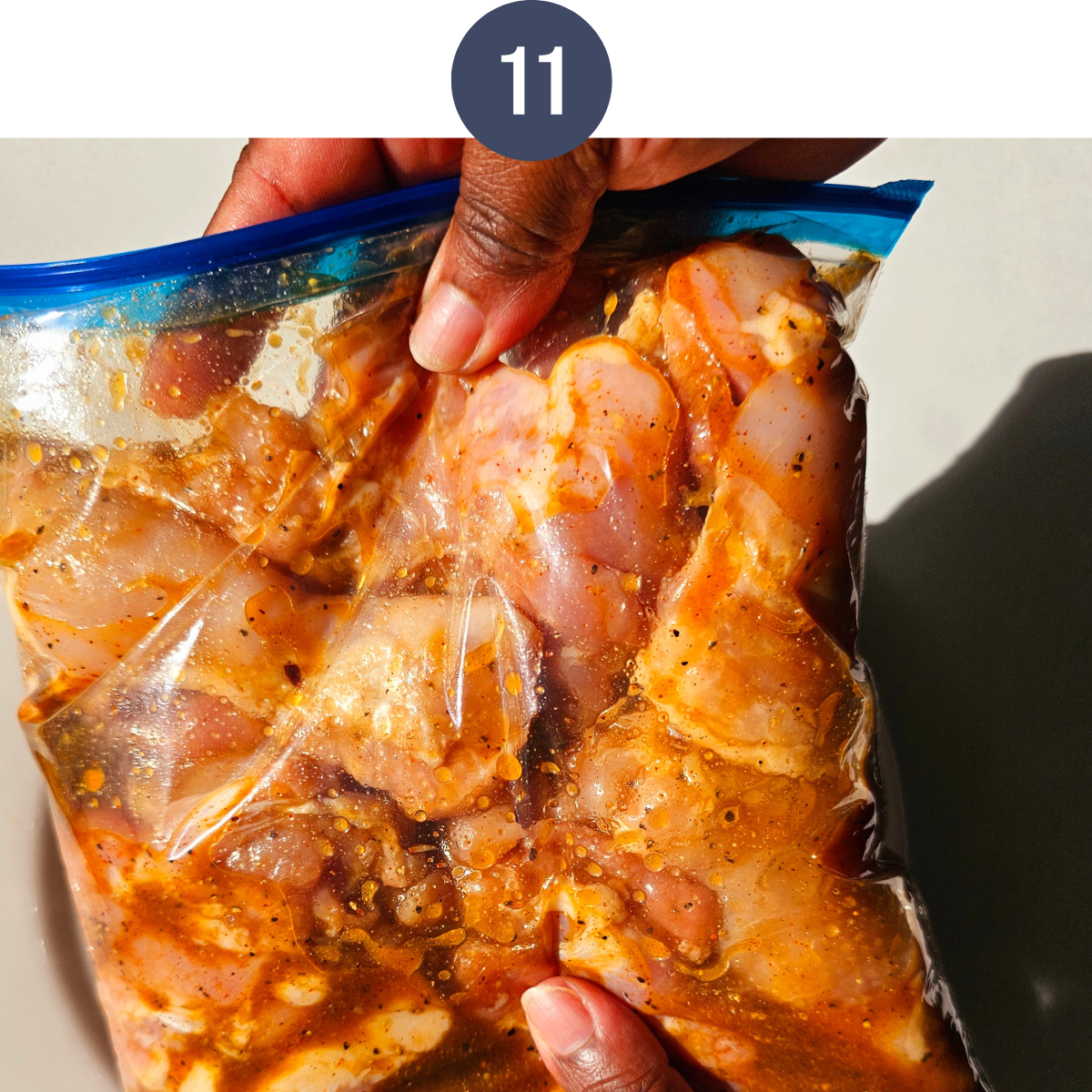 - Refrigerate: I usually slide them into a Ziploc bag and let them hang out in the refrigerator. If I’m short on time, 30 minutes will do, but letting them marinate overnight maximizes the flavor.